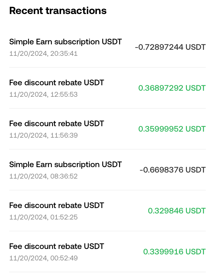 저는 OKX거래하면서 거래수수료의 20%를 리베이트로 받고 있습니다. 그 리베이트를 자동으로 Simple Earn으로 투자되게 만들어놨는데 적은 금액들이 한 곳으로 모이고 또 높은 연이율로 재투자가 되니 모이는 금액을 보는 재미가 있습니다. 혹시 다른 거래소에서 높은 수수료로 코인 거래하고 계신다면 저처럼 수수료 최저가 거래소에 20% 수수료 리베이트도 받으시면서 거래하시길 바랍니다. 그리고 그 리베이트로 재투자하면서 추가 수익창출하시길 바랍니다. 아래 배너 클릭하셔서 가입하시면 수수료 20% 리베이트 혜택 받으실 수 있습니다.
